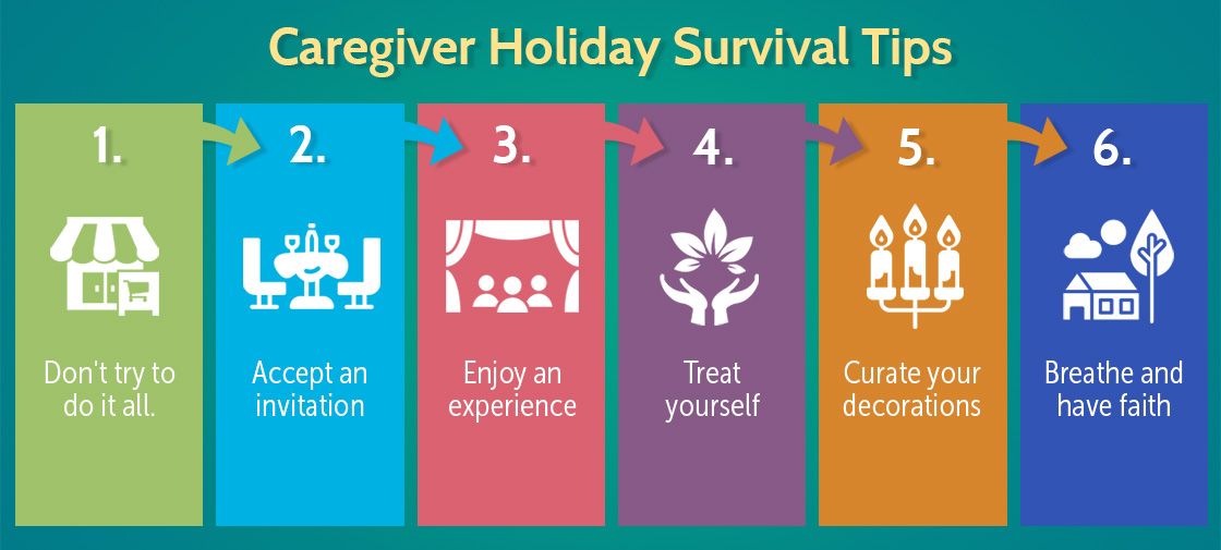 - Take a night or trip away from home around the holidays. This excursion might be for you alone to replenish your energy or you may include the family for a special get-away or meal together. Some hotels decorate beautifully at Christmastime.
